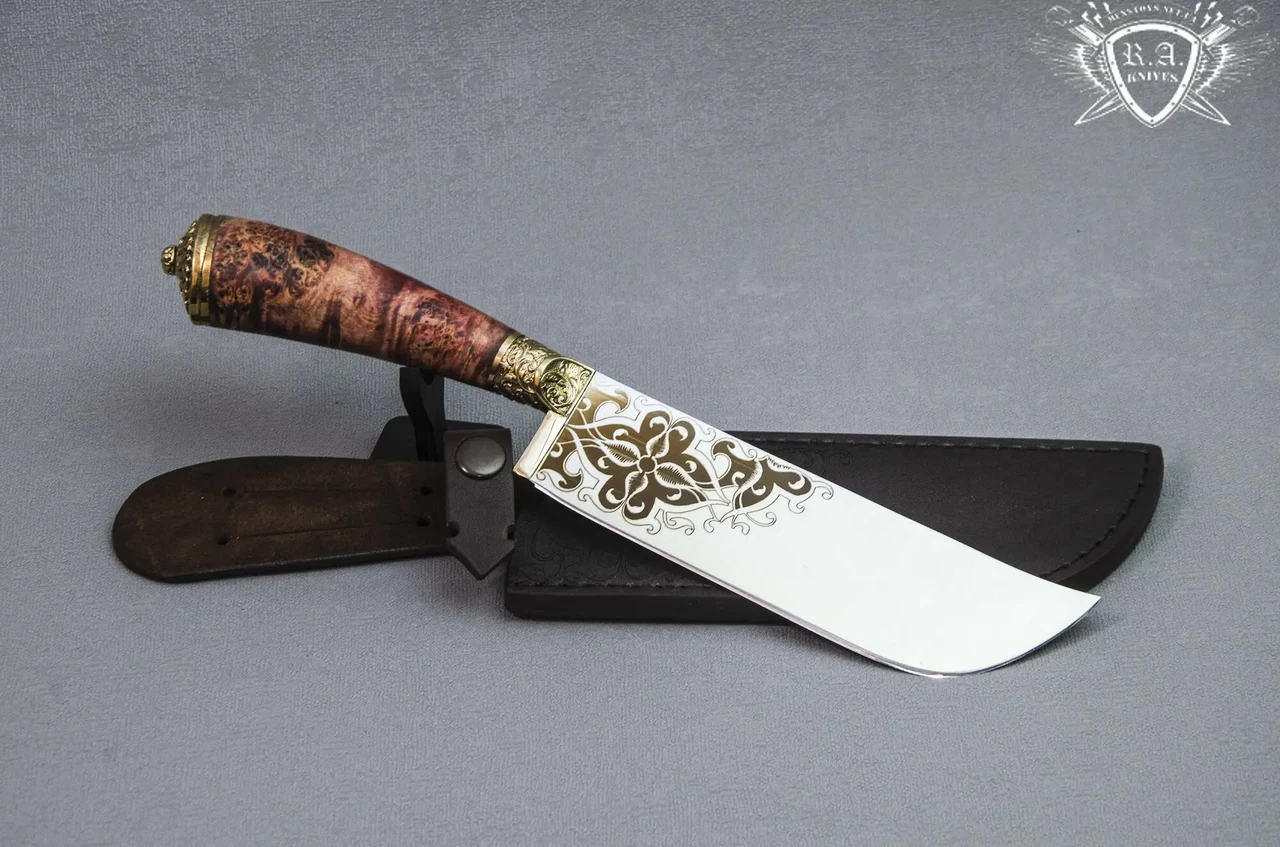 До вашої уваги авторський ніж "Пчак Тугри" — за мотивами вузбекського національного ножа.Совміщує в собі красу та харизму з гарними робочими характеристиками.