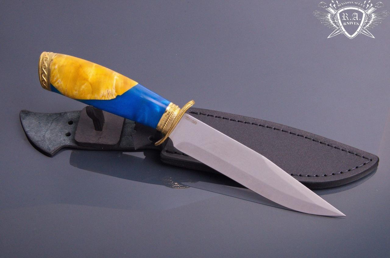 Ніж стилізований під мисливську тематику. Відрізняється простотою і зручністю у використанні. Тонкий, витончений клинок із неіржавкої сталі, не потребує особливого догляду.Сталь 50Х14МФ стійка до впливу вологих середовищ, агресивних хімічних речовин, не викликає алергії.